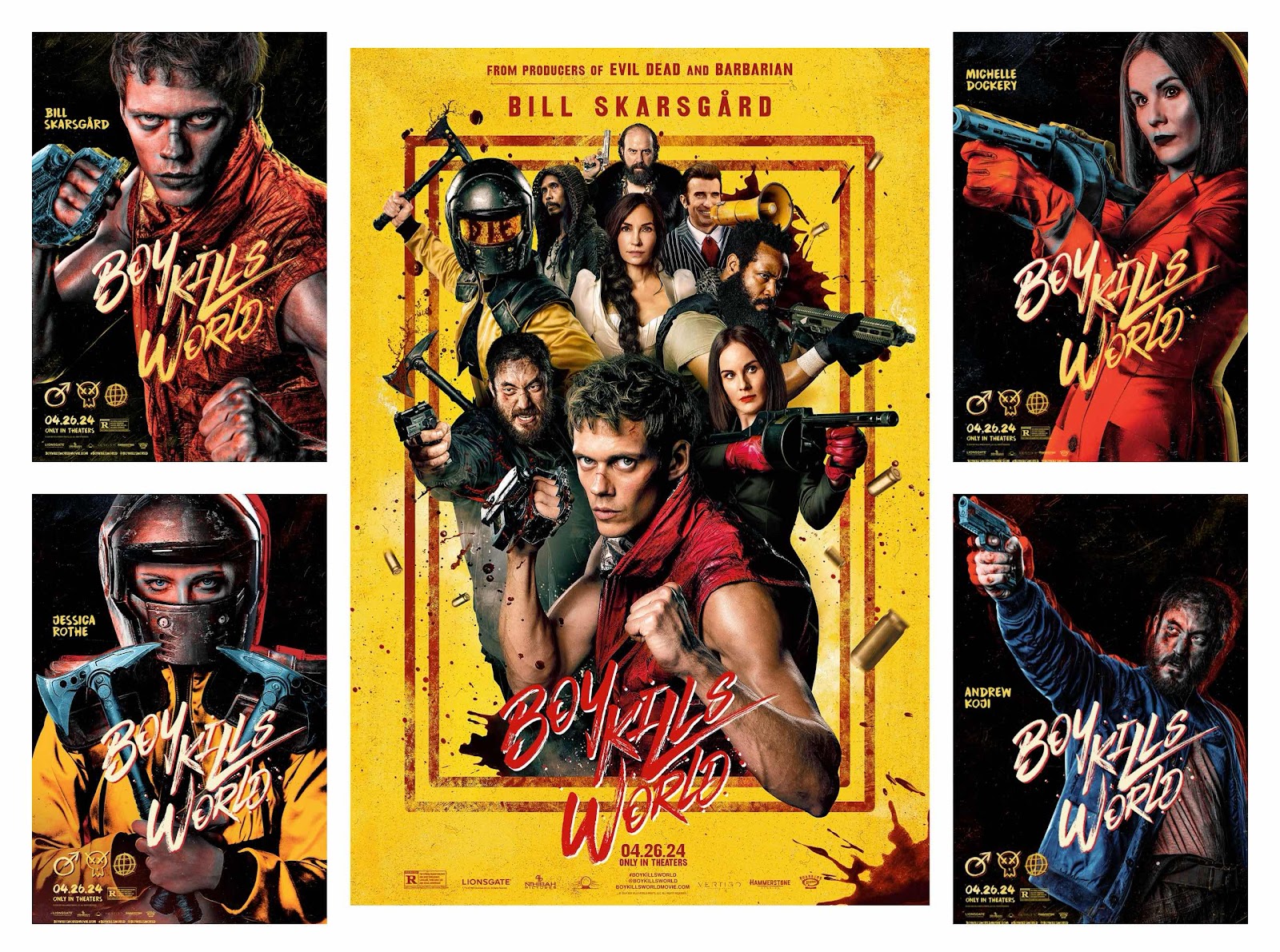 Starring Bill Skarsgård, Jessica Rothe, Michelle Dockery, Brett Gelman, Isaiah Mustafa, Yayan Ruhian, with Andrew Koji, Sharlto Copley and Famke Janssen